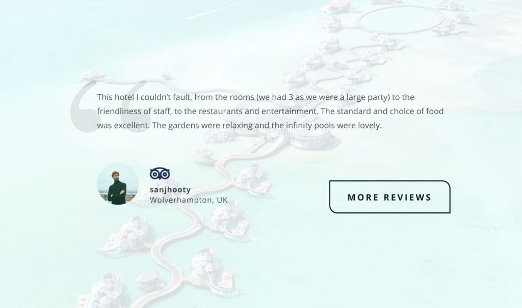Third-party reviews can be a great tool to reinforce your message. Feeding independent guest reviews from sites like TripAdvisor, Yelp, Google may have a very good impact on how potential customers see your hotel. Just be careful – don’t feed just the positive reviews, having only 5-star reviews on your site raise a red flag almost immediately.